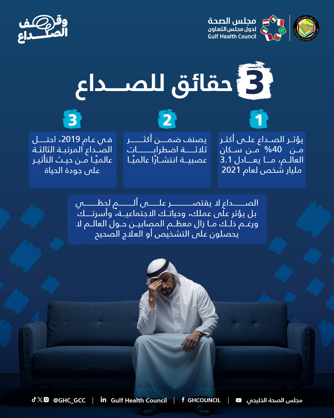 حملة توعوية تهدف إلى رفع الوعي الصحي حول أنواع الصداع وتسليط الضوء على الوقاية من المسببات والمحفزات وأهمية نمط الحياة الصحي مع الاستخدام الآمن للعلاج لتحسين جودة الحياة للمجتمع الخليجي